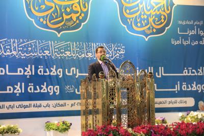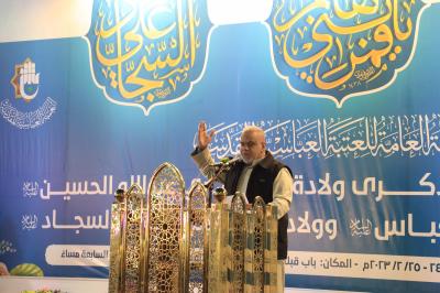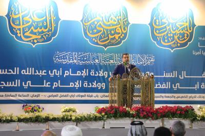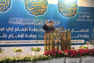 Die Feierlichkeiten begannen mit dem Rezitieren von Versen aus dem Heiligen Koran, vorgetragen vom Vorleser des Heiligen Abbassitischen Schreins, Sayed Haider Gluukhan, gefolgt von der Rede des Generalsekretariats des Heiligen Abbassitischen Schreins, die der stellvertretende Leiter der Abteilung für religiöse Angelegenheiten, Scheich Salah al-Karbalai, hielt, und begann mit Glückwünschen an die Anwesenden und die islamische Nation anlässlich des gesegneten Shaaban-Geburtstags, Dabei erklärte er: "Es ist angemessen, an solch gesegneten Tagen und mit der erhaltenen Überlieferung der Imame der Ahl Al-Bayt (Friede mit ihnen) zu sprechen, insbesondere Imam Al-Sadiq (Friede mit ihm) mit seinem Ausspruch: (Unsere Schiiten freuen sich wegen unserer Freude und trauern wegen unserer Traurigkeit). Von der Wiederbelebung denken wir, dass sie für Gott, den Allmächtigen, annehmbar und angemessen ist, aber gleichzeitig, wenn wir die Kultur der Freude und ihre Angemessenheit und das, was wir zu bestimmten Anlässen praktizieren, betrachten wollen, hat sie noch nicht erreicht, was der Imam (Friede mit ihm) wollte, Denn das Ziel der Hinwendung zu all den Ritualen, die wir praktizieren, ist es, die Stationen der Welt zu durchqueren, bis wir Gott, dem Allmächtigen, mit einem großzügigen Gesicht begegnen, und es ist eine Art Flehen zu Gott, denn die Wege zu Ihm sind vielfältig.