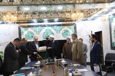 Dies geschah in Anwesenheit des Leiters der wissenschaftlichen und intellektuellen Al-Ameed Gesellschaft, Dr. Riyad Tariq Al-Amidi, und ihrer Mitglieder, Dr. Abbas Rashid Al-Musawi, Dr. Nawras Muhammad Shahid Al-Dahan und Dr. Ahmed Sabih Al-Kaabi, Vizepräsident der Wissenschaftlichen und Intellektuellen Al-Ameed Gesellschaft, und im Namen der Imam Reza (Friede mit ihm) International University, der Präsident der Universität, Dr. Murtada Rajoui, Dr. Mustafa Al-Faqih Al-Isfandiari, der Internationale Assistent am Heiligen Schrein von Razavi, Hojjatullah Talai, Dr. Sajjad Nikkho, und Dr. Muhammad Hassan Haji Mahmari.