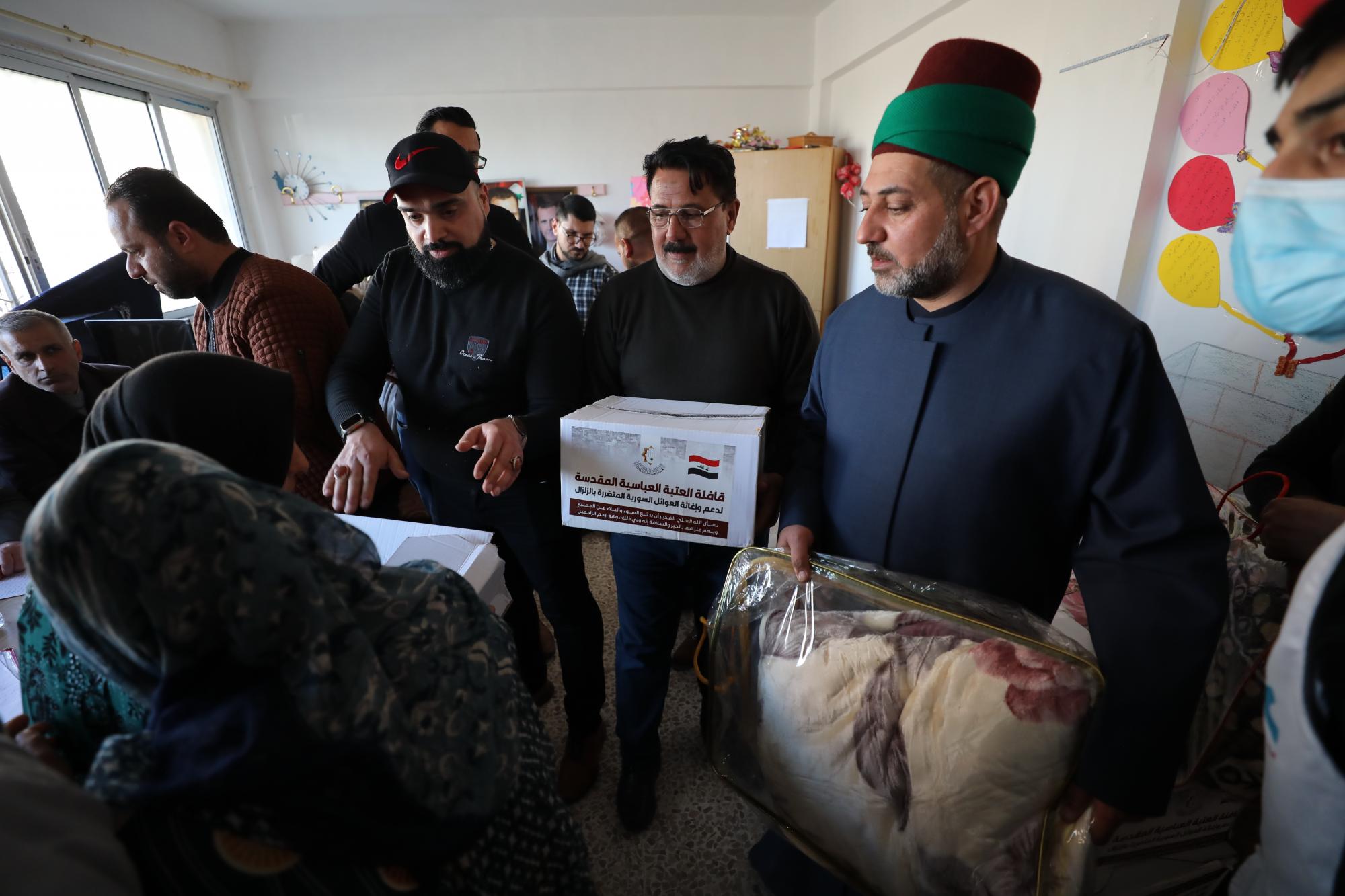 La délégation a commencé à distribuer de l'aide aux personnes touchées dans le gouvernorat de Lattaquié, en coordination avec les autorités compétentes, avec la participation de plus de deux cents membres du service d'Aba al-Fadl al-Abbas (que la paix soit sur lui), tandis qu'un groupe des caravanes iront en Syrie sous la direction directe de Son Éminence, le gardien légal du sanctuaire sacré d'al-Abbas (p), Son Éminence Sayyid Ahmad al-Safi.