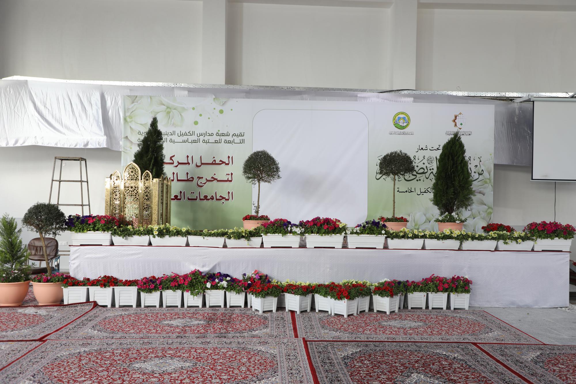 Il a ajouté : "Deux grandes plates-formes ont été allouées pour prendre des photos de groupe, et des bannières pour la cérémonie centrale y sont accrochées. La première plate-forme se trouve dans le groupe éducatif Al-Ameed, et la seconde sera dans l'hôte extérieur de la Sainte Sanctuaire sur la route (Najaf-Karbala)."