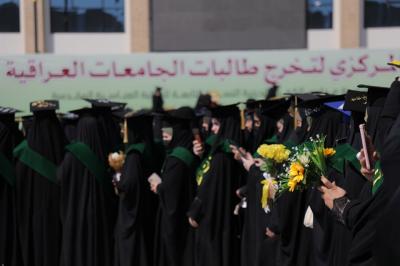 Les étudiantes participant à la cinquième promotion du programme Al-Kafeel Girls pour les diplômés universitaires irakiens ont commencé à prendre des photos de groupe.
