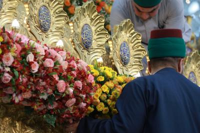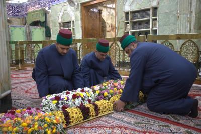 نصبت شعبة الحرم الشريف بالتعاون مع السادة الخدم أكاليل الزهور على الشباك الطاهر للمولى أبي الفضل العباس (عليه السلام) بمناسبة ذكر ولادة منقذ البشرية (عجل الله فرجه).