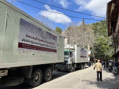 الموسوی عنوان داشت: فرایند توزیع طبق مکانیزم سازمان یافته ای با هماهنگی طرفهای ذیربط در شهر جبله و سایر مناطق انجام شد و تلاشهای حداکثری برای رسیدن کمکها به بیشترین تعداد ممکن از آسیب دیدگان صورت گرفت.