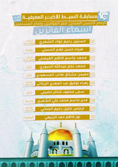 Uongozi mkuu wa Atabatu Abbasiyya tukufu umetangaza majina ya waliofaulu kwenye shindano la (mjukuu mkubwa -a.s-) lililofanywa pembezoni mwa kongamano la kuzaliwa kwa Imamu Hassan Almujtaba (a.s).