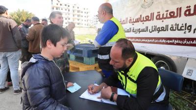 Le sanctuaire d'al-Abbas a lancé le premier convoi de secours vers la Syrie le 22 février, et il comprenait plus de (1555) tonnes de médicaments et de vivres, et toutes les fournitures nécessaires aux familles touchées, ainsi que la sécurisation du logement et besoins en matière d'abris, pour établir des camps pour les personnes qui ont perdu leur maison à la suite du tremblement de terre.