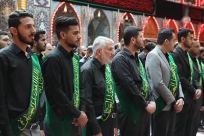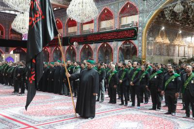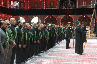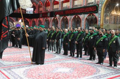 امیر المومنین حضرت علی علیہ السلام کے ایام شہادت کے دوران روضہ مبارک حضرت عباس (علیہ السلام) کے خدام نے ان مراسم کا آغاز حضرت عباس علیہ السلام کی زیارت سے کیا۔ سوگ کی حالت میں سیاہ لباس پہنے خدام نے ضریح مبارک کے سامنے کھڑے ہو کر زیارت نامہ اور روضہ مبارک کا مخصوص ترانہ (لَحنِ الإباء) پڑھا۔