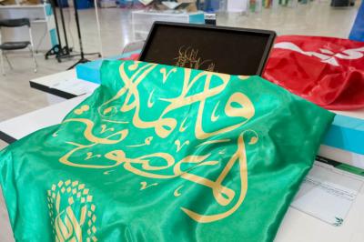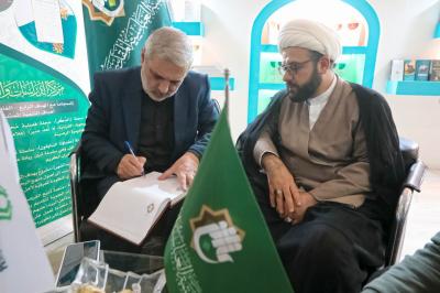 این گروه که با خود پرچم متبرک حرم مطهر حضرت معصومه (عليها السلام) را به همراه داشتند، به پرچم مبارک حرم حضرت ابالفضل العباس (علیه السلام) موجود دراین غرفه، تبرک جستند.