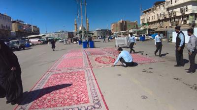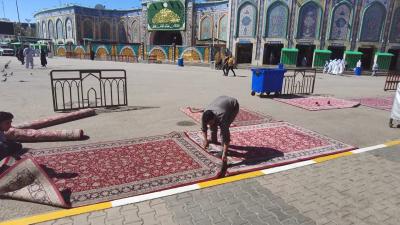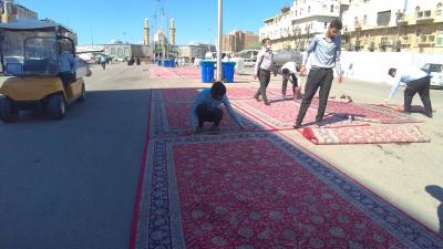 بخش امور خدماتی آستان قدس عباسی روزانه منطقه اطراف آستان را برای خدمتگزاری به زائران به ویژه در ایام زیارتی و شبهای جمعه مفروش مینماید.