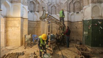 Die zweite Phase der Sanierungsarbeiten umfasste auch die Festlegung der Arbeitsschritte für die Durchführung, die die Vorbereitung des Geländes auf der Grundlage der zuvor erstellten Studie umfasste, gefolgt von der Darstellung der Ergebnisse der Aushubarbeiten und der Injektionsarbeiten für den Maqam.