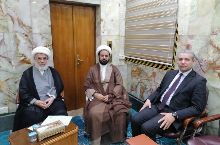 والتقى الوفد الذي ترأّسه مديرُ المركز الدكتور عباس القريشي، يرافقه الدكتور رائد عبيس الباحث في المركز العراقي، بسماحة المتولّي الشرعي للعتبة الحسينية المقدّسة الشيخ عبد المهدي الكربلائيّ.