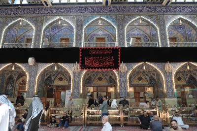 Les signes de deuil au sanctuaire saint Al Abbas (p) pour la commémoration du martyre de l'Imam al-Sadiq (que la paix soit sur lui).