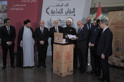 Der Minister für Gesundheit, der Vertreter des Premierministers, Dr. Saleh Al-Hasnawi, beglückwünschte den Heiligen Abbassitischen Schrein zur Enthüllung der dokumentarischen Enzyklopädie der offenen Massengräber im Irak während der Feierlichkeiten zum nationalen Tag der Massengräber am Märtyrerdenkmal in der Hauptstadt Bagdad, am Dienstag, und die Enthüllung der dokumentarischen Enzyklopädie der offenen Massengräber für den Zeitraum 1968-2003, die vom irakischen Zentrum für die Dokumentation von Verbrechen des Extremismus des Ministeriums für geistige und kulturelle Angelegenheiten im Heiligen Schrein vorbereitet und verfasst wurde.