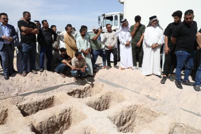 An der Zeremonie, die in Zusammenarbeit mit der Abteilung für Massengräber und Gerichtsmedizin und dem irakischen Zentrum für die Dokumentation extremistischer Verbrechen der Abteilung stattfand, nahmen der Vertreter des Premierministers und Gesundheitsministers, Dr. Saleh Al-Hasnawi, sowie zahlreiche religiöse und offizielle Persönlichkeiten und die Familien der Märtyrer teil.