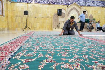 وتابع، "إضافةً إلى أعمال فرش السجاد، فقد تمّ إجراء غسلٍ شامل لقاعات المقام المطهّر"، مبيناً أن "هذه الأعمال تتمّ بشكلٍ دوريّ وبحسب جدولٍ زمنيّ خاصّ".