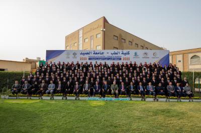 Er fügte hinzu: "Die Freude ist nicht groß genug für uns, das offizielle Foto der Graduierung der ersten Charge zukünftiger Ärzte zu machen, und wir hoffen, dass sie ein brillantes praktisches Leben und eine reiche wissenschaftliche Zukunft haben werden."