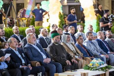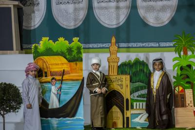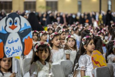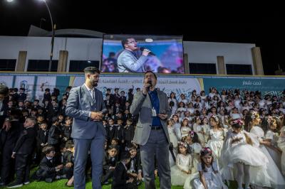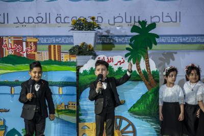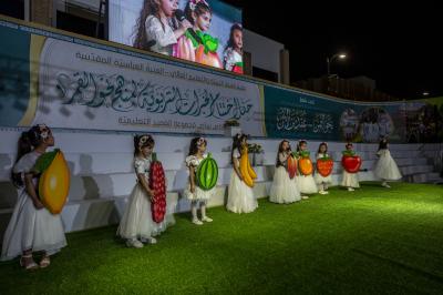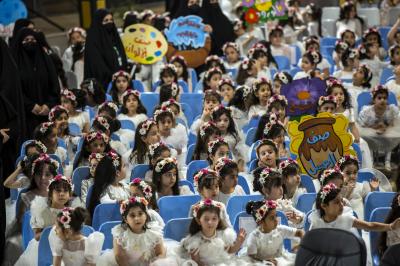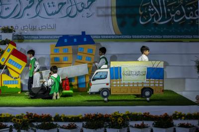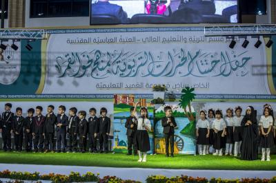 Après avoir terminé les représentations théâtrales, l'événement de remise des bannières a eu lieu et la cérémonie s'est terminée avec les enfants montant sur scène et interprétant un hymne intitulé (Qui est comme moi).