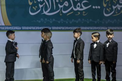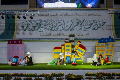 La cérémonie comprenait des scènes théâtrales sur le récent tremblement de terre et le rôle du sanctuaire abbasside dans l'assistance, le soutien et l'assistance aux familles touchées, ainsi qu'une autre présentation sur le rôle du sanctuaire abbasside dans la réduction de l'analphabétisme grâce à la création d'un centre ( nous apprenons à vivre et avec la connaissance nous nous élevons), une autre présentation a été faite montrant les expériences scientifiques les plus importantes que les enfants ont apprises, telles que le transport, les ordinateurs, les couleurs et leur combinaison avec des matériaux de construction, en plus du palmier dattier et de ses bienfaits.