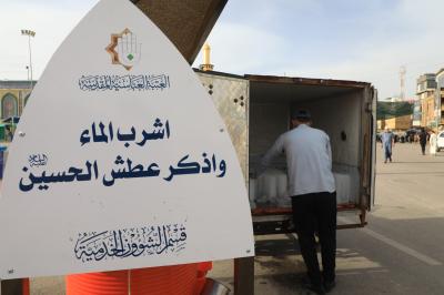 وأضاف، أن "الحافظات تزود بشكلٍ متواصلٍ بالماء المعقم (Ro)، وقوالب الثلج لتوفير مياه باردة صالحة للشرب لزائري مرقدي الإمام الحسين وأخيه أبي الفضل العباس (عليهما السلام)".