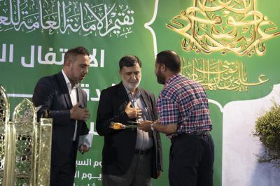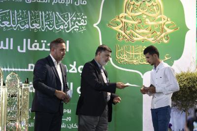 La cérémonie s'est terminée en honorant les gagnants annoncés précédemment du concours pour la naissance de l'imam Reza et de sa sœur, Mme Fatima Al-Masouma (que la paix soit sur eux), qui a été organisé par le sanctuaire saint Al Abbas (p) plus tôt, par Dr Afzal Al-Shami le directeur du bureau du haut fonctionnaire du snactuaire saint Al Abbas (p).