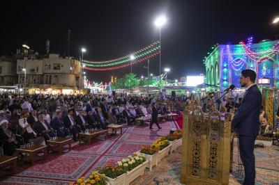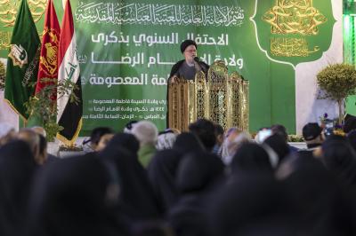 Le festival a commencé par la récitation de versets du Saint Coran par le lecteur Laith Al-Obeidi, après quoi la sourate Al-Fatihah a été récitée comme une miséricorde pour les âmes des justes martyrs d'Irak, suivie du discours du sanctuaire abbasside prononcé par Sayeed Adnan Gluukhan du Département des affaires religieuses, il a commencé par féliciter les personnes présentes à l'occasion de l'anniversaire de naissance de l'Imam Al-Reza (que la paix soit sur lui), en plus des événements les plus importants qui ont eu lieu dans la vie de l'Imam Al-Reza (que la paix soit sur lui), et ce qu'il a souffert à cause de sa contemporanéité avec la période du règne de Bani Abbas, en plus de la déclaration de la connaissance et de la piété de l'Imam (que la paix soit sur lui), son ascèse et sa piété, alors qu'il évoquait des éclairs du la vie de sa sœur, Fatima Al-Masumeh (la paix soit sur elle).