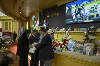 Den Abschluss der Aktivitäten des ersten Tages des Fatwa-Festivals der Heiligen Verteidigung bildete die Ehrung des Forschungsteams der Enzyklopädie der Märtyrer des Speicher-Massakers durch Dr. Abbas Rashid al-Mousawi, Mitglied des Verwaltungsrats des Abbassitischen Schreins, sowie die Ehrung der Institutionen, die zur Enzyklopädie beitragen, durch den Direktor des Büros des leitenden Beamten, Sayed Afdhal al-Shami, den Leiter des wissenschaftlichen Komplexes des Heiligen Korans am Heiligen Schrein, Dr. Mushtaq al-Ali, Leiter der Abteilung für Öffentlichkeitsarbeit; Mohammed Ali Azhar, Leiter der Abteilung für geistige und kulturelle Angelegenheiten; Aqeel al-Yasiri, sowie eine Reihe von Familien der Opfer des Massakers von Speicher mit Sach- und Segensgeschenken aus dem Schrein von Aba al-Fadl Al-Abbass (Friede mit ihm) geehrt.