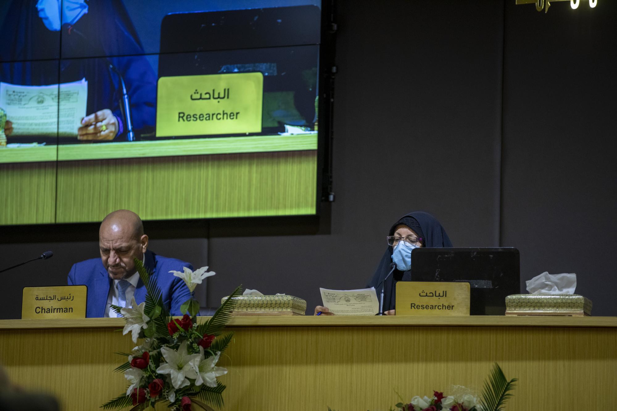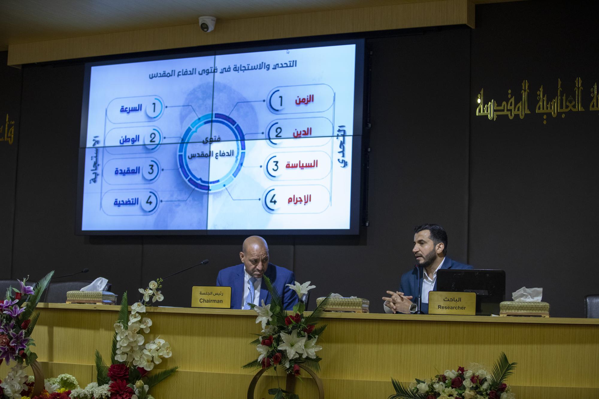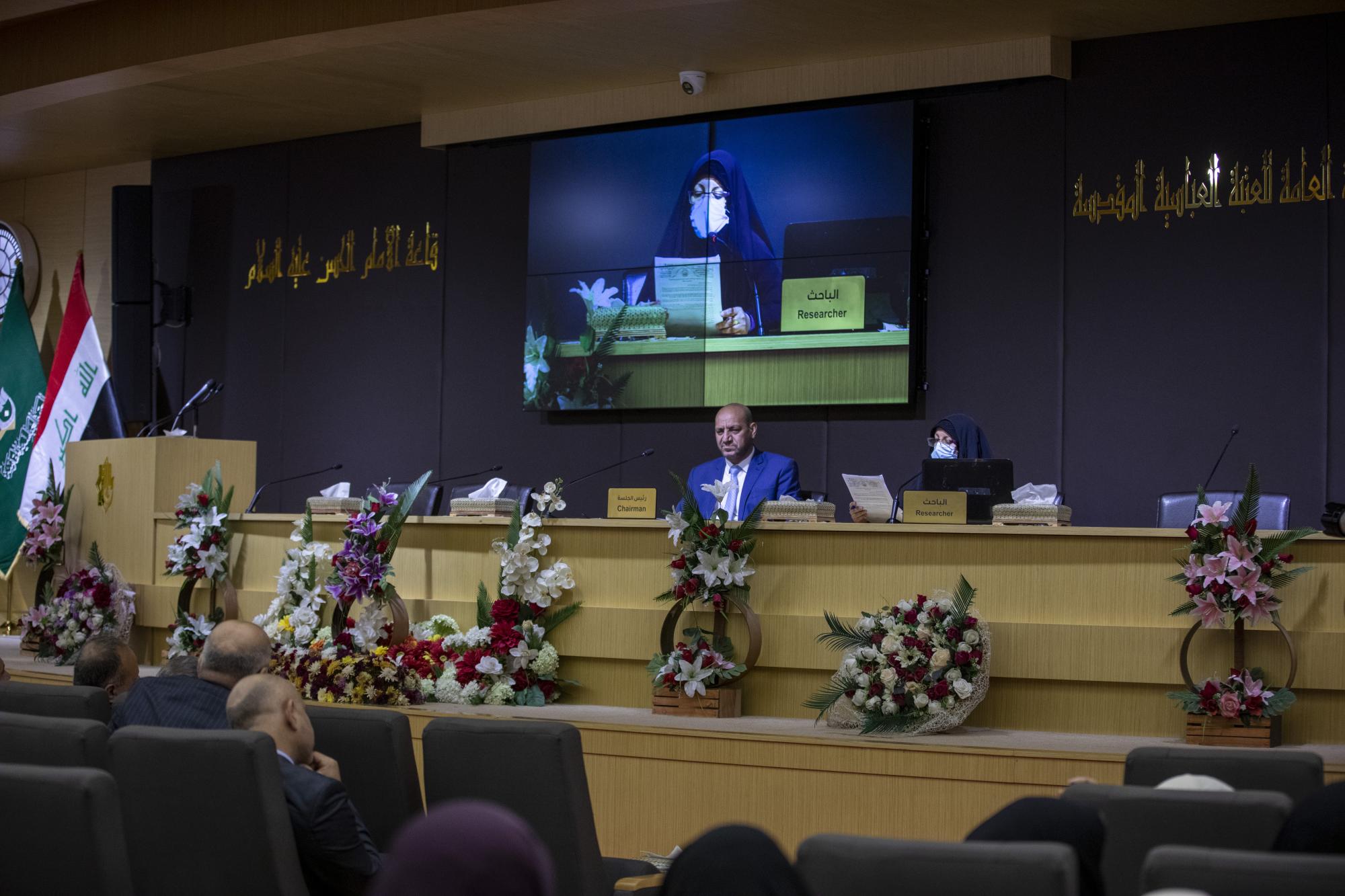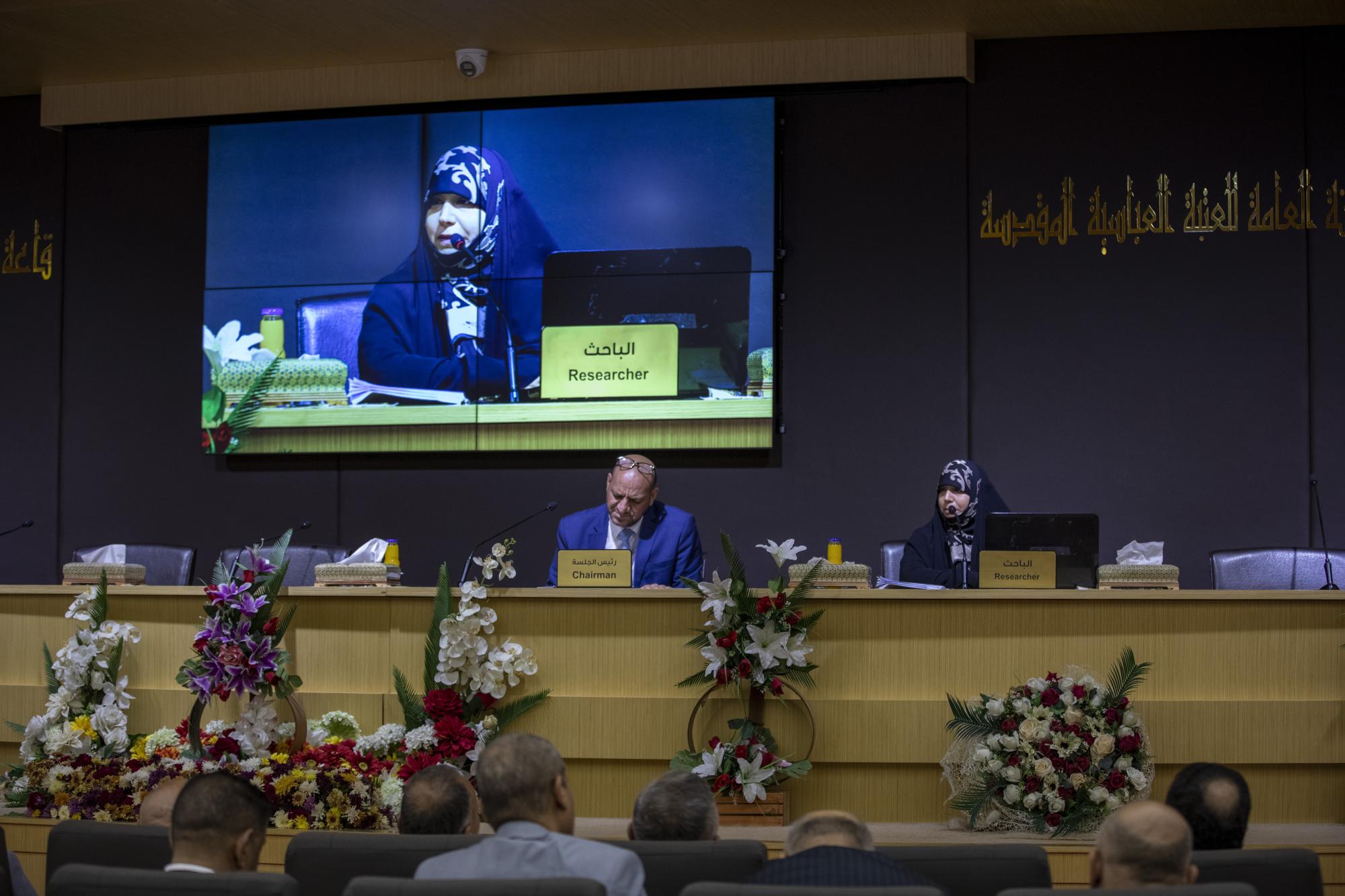 وأضاف أن "مشاركتنا جاءت عبر بحثٍ باللغة الإنكليزية، يخصّ تحليل القوالب اللغوية التي استخدمها الشيخ عبد المهدي الكربلائي في خطبته لإعلان الجهاد الكفائي، باستخدام نظريّة العالم (فان دايك) للجوانب التحليلية للسرد، ودُرست وفق ثلاثة محاور منها المحور الظاهر والباطن والأجواء المحيطة بالخطبة، والهدف من ذلك هو ربط ما قبلها بما بعدها، وجذب انتباه المستمع لأنّها كانت تمثّل إعلاناً للنفير العام الذي لولاه لما كان لدينا وطن".