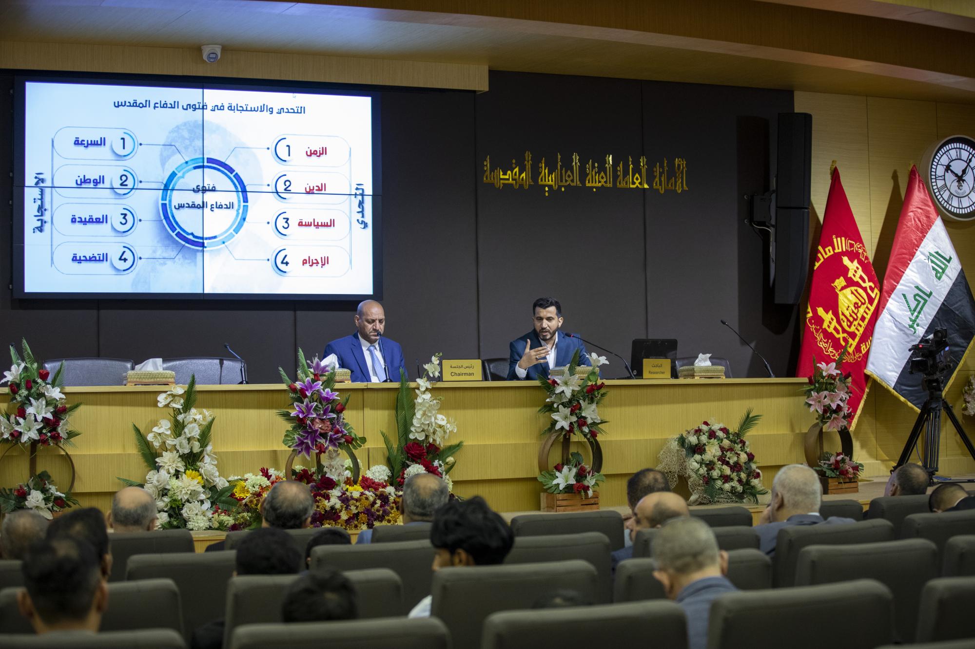 جاء ذلك خلال مشاركته في مهرجان فتوى الدفاع المقدّسة السنوي الثقافي بنسخته السابعة، الذي يقيمه قسم الشؤون الفكرية والثقافية، وقسم مؤسّسة الوافي للتوثيق والدراسات، وجمعيةُ العميد العلمية والفكرية، احتفاءً بالذكرى السنويّة لإطلاق فتوى الدّفاع المقدسة تحت شعار: (المرجعيّة الدينيّة حصن الأمة الاسلاميّة)، على قاعة الإمام الحسن (عليه السلام) ويستمرّ ليومَين.