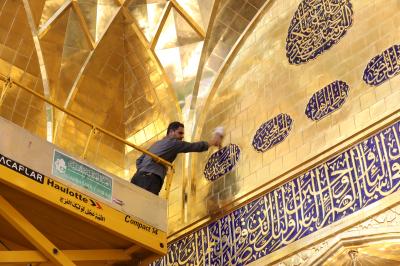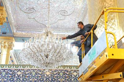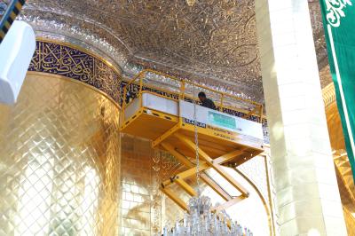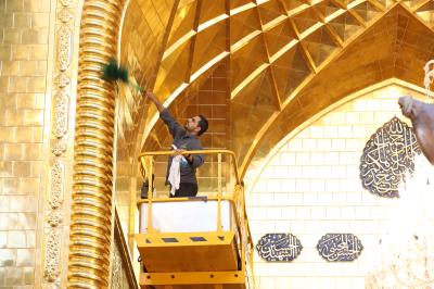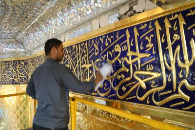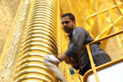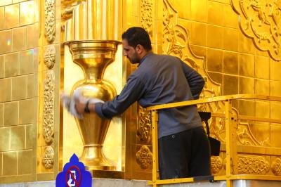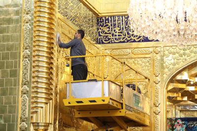 Il a ajouté que la division choisissait des moments où il y avait moins de visiteurs pour accomplir cette tâche, afin d'éviter de les déranger pendant l'accomplissement des rituels de Ziyarat, expliquant : " Nous utilisons des nettoyants spéciaux pour métaux précieux dans le processus de nettoyage ".