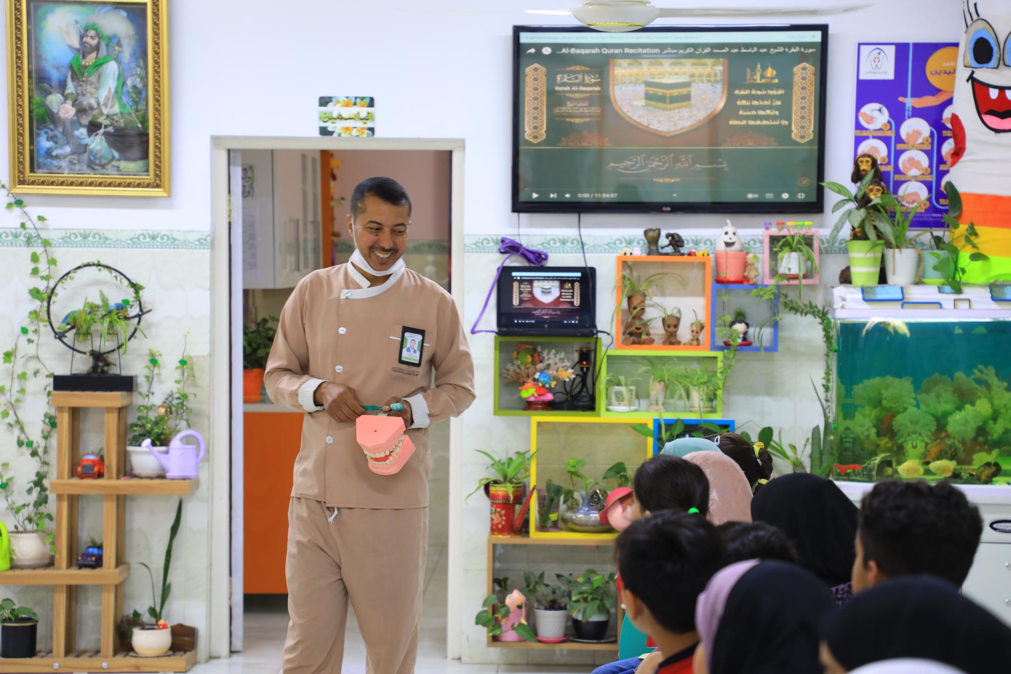 وأضاف "عملنا على كسر حاجز الخوف لدى الأطفال من طبيب الأسنان، وتعليمهم على الطريقة الصحيحة لاستخدام أدوات تنظيف الفم مثل الخيط والفرشاة،" مبيناً أن "العتبة المقدسة تتكفّل بتوفير عجلات لنقلهم ذهاباً وإياباً من محافظاتهم إلى المركز، وزيارة الإمام الحسين وأخيه المولى أبي الفضل العباس(عليهما السلام)، فضلاً عن تقديم وجبة طعام".