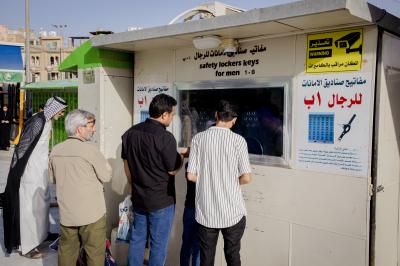 Er fügte hinzu: "Die Schränke für die Männer befinden sich am al-Qibla-Tor an zwei Standorten, wobei der erste 10 und der zweite 20 Spinde enthält, und an der Außenmauer befinden sich ebenfalls 10 Spinde, während die Spinde für die Frauen am al-'Alaqami-Tor, am Sahib al-Zaman-Tor und am Tor von Imam Ali (Friede mit ihnen) verteilt sind, mit je 10 Spinde für jeden Standort".