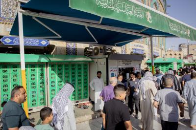 Die Abteilung für Dienstangelegenheiten am Heiligen Abbassitischen Schrein verfügt über 105 Schließfächer mit jeweils 30 Fächern für die Aufbewahrung der Taschen der Besucher, die von der Schließfachabteilung der Tresorabteilung bereitgestellt werden.