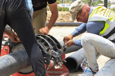 وأضاف "باشرنا بمد الكيبلات الكهربائية ذات الأحمال العالية على مسافة 4 كيلو متر، من أصل 18 كيلو متر، وما زال العمل متواصلًا لإنجازها بالسرعة الممكنة".