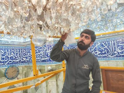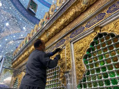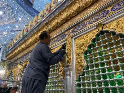 Et il a indiqué que "le processus vient selon un plan délibéré, en choisissant des moments où le nombre de visiteurs diminue, pour éviter de les déranger lors de l'exécution des cérémonies de ziyarat, et en utilisant des détergents spéciaux avec une grande précision dans le traitement des métaux précieux (or et argent )."