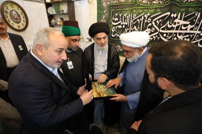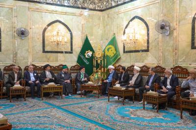 This came during the reception of the Senior Official of the Al-Abbas's (p) Shrine; Sayed. Ahmad al-Safi, and the delegation of the shrine of Imam ar-Redha (peace be upon him) headed by its Senior Official; His Eminence Sheikh Ahmed Al-Marawi.