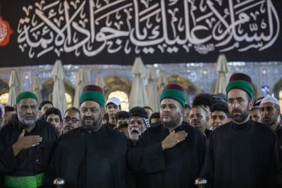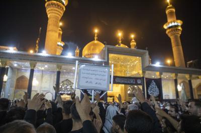 Er fügte hinzu: "Die Prozession des Volkes von Karbalaa hielt bei ihrer Ankunft am Schrein der Imame Al-Kadhem und Al-Jawad (Friede mit ihnen) einen Beileidsrat ab, bei dem Radood Husayn al-Saghir unter Beteiligung einer großen Anzahl von Trauernden, die viele Husseini-Gedichte, Elegien und Klagen sangen, die das traurige Ereignis zum Ausdruck brachten, Klagen vortrug."