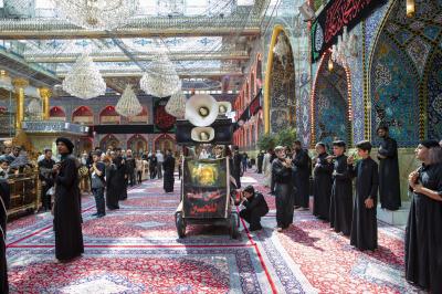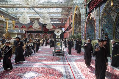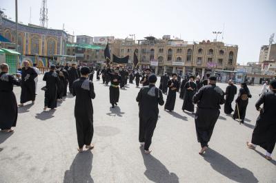 According to Mr Awaz, the processions start from the Qibla gate of Imam al-Hussayn (peace be upon him), heading to the shrine of Aba al-Fadl al-Abbas (peace be upon him) passing through the square between the Two Holy Shrines, chanting elegies that tell of the misfortunes that befell the imams of Ahl Al-Bayt (peace be upon them). And upon their arrival to the shrine of Imam al-Hussayn (peace be upon him), a condolence Council is held with the participation of a large number of mourners, in which many poems and lamentations about this sad occasion are recited,"he said.