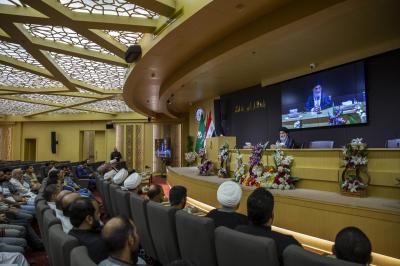 Son Éminence a parlé, lors de son discours à la délégation d'étudiants en sciences religieuses, de l'importance de se souvenir de la fatwa de la victoire émise par Son Éminence, le Grand Ayatollah Sistani, qui a protégé l'Irak et son peuple de Daesh.