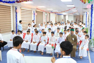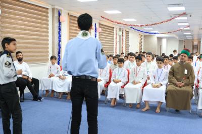 He added that "the scientific complex held a blessed ceremony on the anniversary of the marriage of the two lights, which came by the order of heaven and brought together the Lady of the women of the worlds; Fatima az-Zahra(peace be upon her), and the best person from after the Prophet(Allah's prayers be upon him and upon his holy Household); the Commander of the Faithful; Imam Ali (peace be upon him), for students of Quranic courses in the Al-Ameed Educational Group".