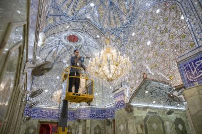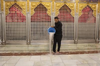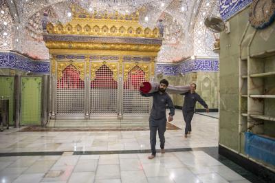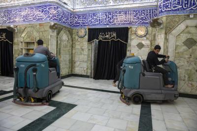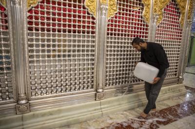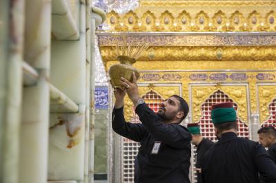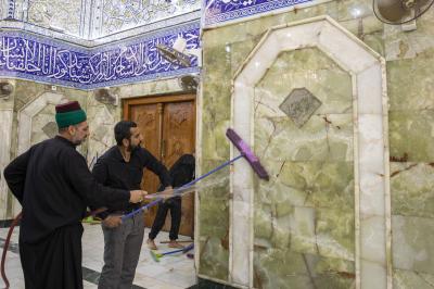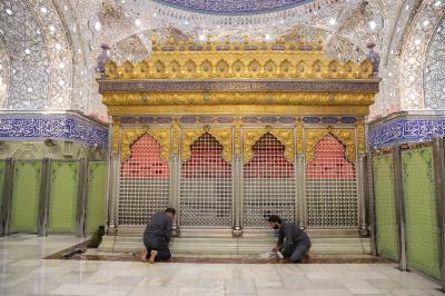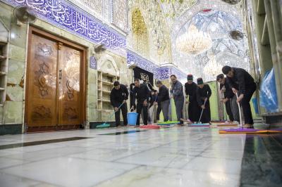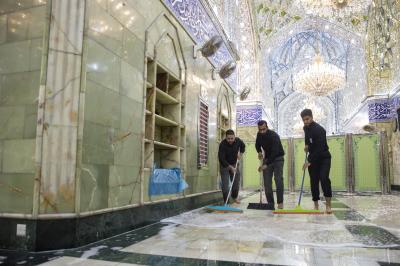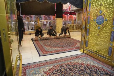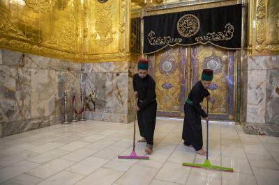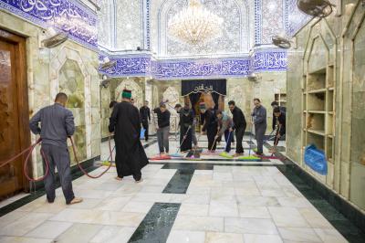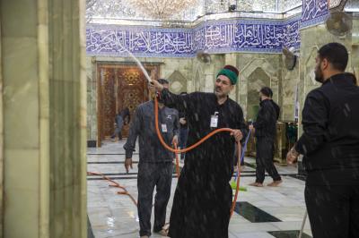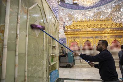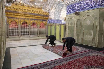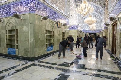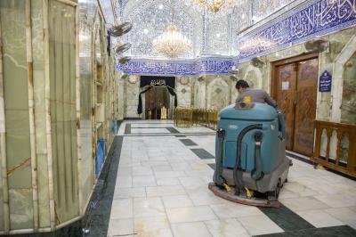 عقیل لطیف گفت: اقدامات شستشو و مفروش نمودن به شکل دورهای و طبق جدولی از پیش آماده شده صورت می گیرد که معمولاً در نیمه شب همزمان با کاهش ازدحام زائران محترم است.