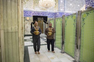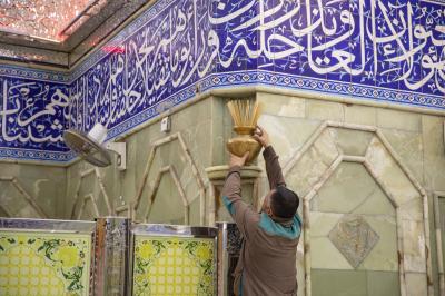 وی اظهار داشت: ما بعد از پایان غبارروبي حرم مطهر در این مکان مرغوبترین انواع فرشهای نو را گستراندیم. همچنین حرم مطهر را با استفاده از بهترین عطرهای طبیعی و انواع عود عربی متناسب با فضای معنوی این مکان عطرافشانی نمودیم.