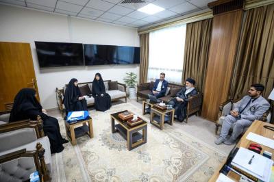 Dies geschah während des Besuchs Seiner Eminenz in der Abteilung für Bildung und Hochschulbildung am Heiligen Abbassitischen Schrein, wo er vom Leiter der Abteilung für Bildung und Hochschulbildung, Dr. Hassan Dakhil Karim, dem stellvertretenden Leiter der Abteilung für Verwaltungsangelegenheiten, Herrn Youssef Al-Taie, und der Direktorin der Al-Ameed-Bildungsgruppe (für Mädchen), Frau Mona Wael, empfangen wurde.