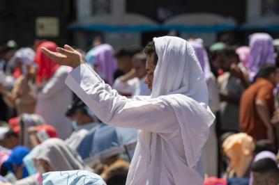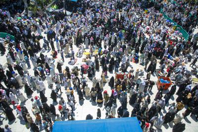 Hundreds of thousands of men and women performed Ziyarat rituals, prayers and special prayers on this blessed day under the rays of the sun, as the square between the Two Holy Shrines and the areas surrounding the Al-Abbas's (p) Shrine was crowded with visitors who sat on the floor to perform the Ziyarat rituals.