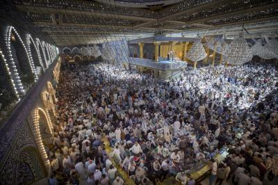 Hundreds of thousands of believers at the shrines of Imam al-Hussayn and his brother Aba al-Fadl al-Abbas (peace be upon them) celebrated the special Ziyarat rituals of the blessed day of Arafah.
