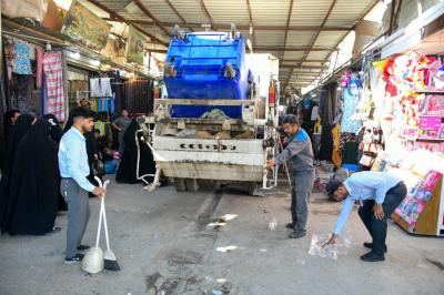 Le chef adjoint du département, l'ingénieur Mahdi al-Musawi, a déclaré : "Le personnel du département a travaillé pour créer l'atmosphère appropriée pour les visiteurs, en entretenant et en nettoyant le Maqam béni et les rues environnantes, ainsi qu'en nettoyant les environs. marché de l'Imam Jaafar al-Sadiq (que la paix soit sur lui)."