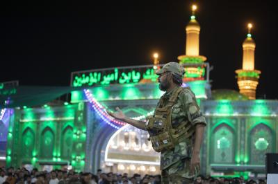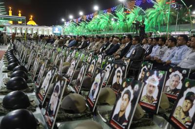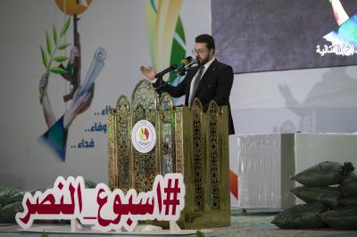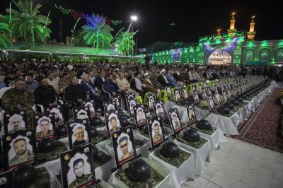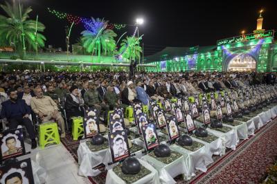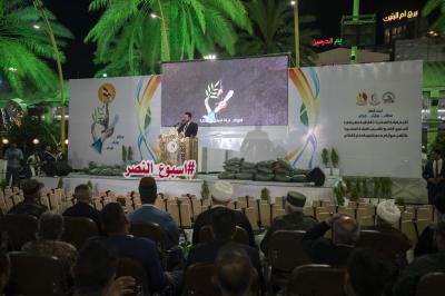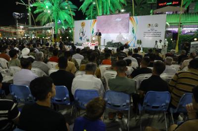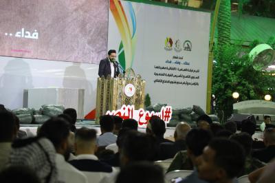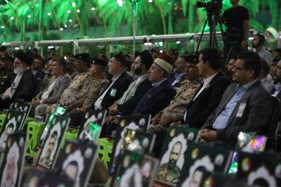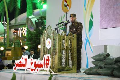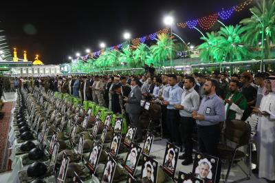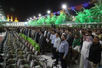 The concert included multiple paragraphs, including the recitation of verses from the Holy Quran by the reciter Hassanein al-Helo and the reciters of Surah al-Fatiha on the souls of the martyrs of Iraq, while those present stood on the Iraqi national anthem and the anthem of the Al-Abbas's (p) shrine-the pride's melody-listened to the words of the Squad leader Sheikh Maytham al-Zaidi and Sayed. Mohammed Hussein al-Amidi.