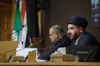 La septième conférence scientifique, qui se tient dans le cadre des activités de la première semaine internationale de l'Imamat, portait le slogan (Imam Mahdi-qu'Allah Tout-Puissant hâte sa sainte réapparition - la justice divine promise), et est supervisée par l'Al-Ameed Association Scientifique et Intellectuelle.