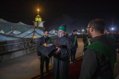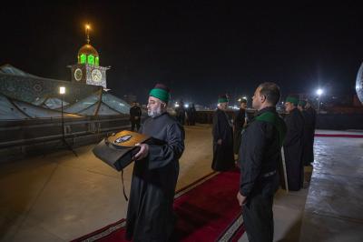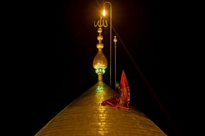 وأُنزِلت الراية الحمراء من على قبة المرقد الطاهر لأبي الفضل العباس (عليه السلام)، إذ تشرّف بإنزالها الأمين العام للعتبة العبّاسية المقدسة, ليرفعَ مكانها راية الحزن والحداد العاشورائيّ السوداء.