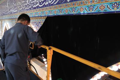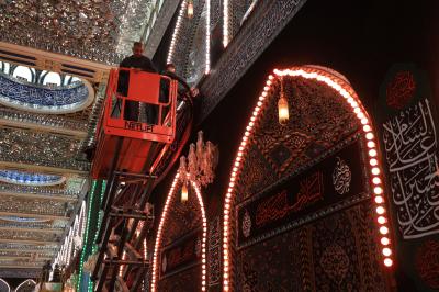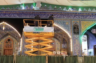 “Hazırlıklar kapsamında güneş ışığı renginde ışık veren lambaların yerine kızıl renkli ışık veren lambalar takılmış, kızıl renkli sancağın indirilip yerine siyah sancağın çekileceği merasim için platform kurulmuş ve Mukaddes Hz. Abbas (a.s.) Türbesi muhitine ve ona götüren caddelere siyah dekor asılmıştır.”