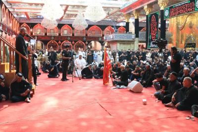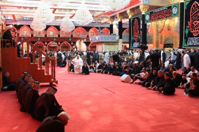 صحن مطهر حرم حضرت ابوالفضل عباس (علیه السلام) برای چهارمین روز متوالی شاهد برگزاری مجلس سوگواری حسینی سالانه در یادبود واقعه عاشورا است. واحد خطابه حسینی با حضور جمعیت انبوهی از زائران و عزاداران بر برپایی این مجلس نظارت دارد.