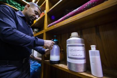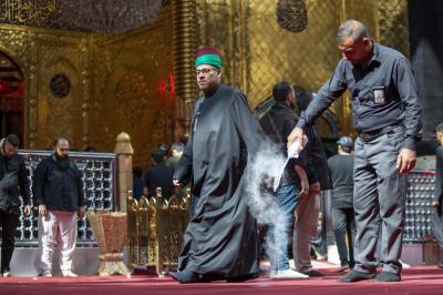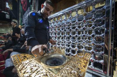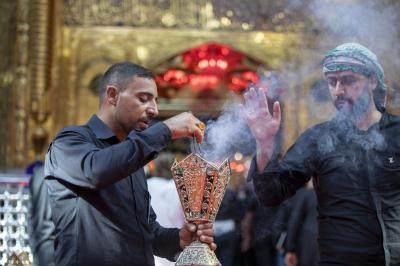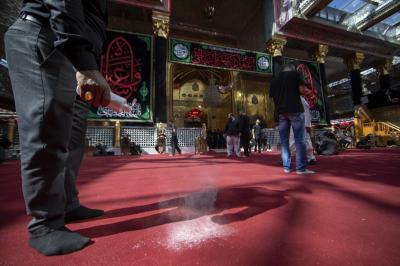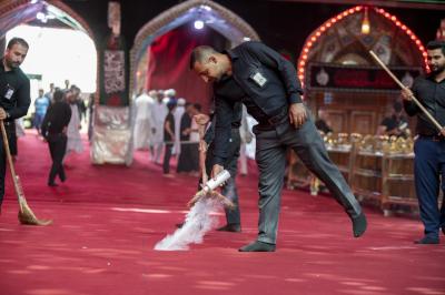 He added that " during these days, the Unit used large amounts of intensive perfumes (powder) for perfuming, especially after replacing the carpets with (red carpet), in addition to the intensity of entry of mourners and their processions to the Holy Courtyard, which necessitated strengthening efforts and increasing the quantities used on ordinary days.